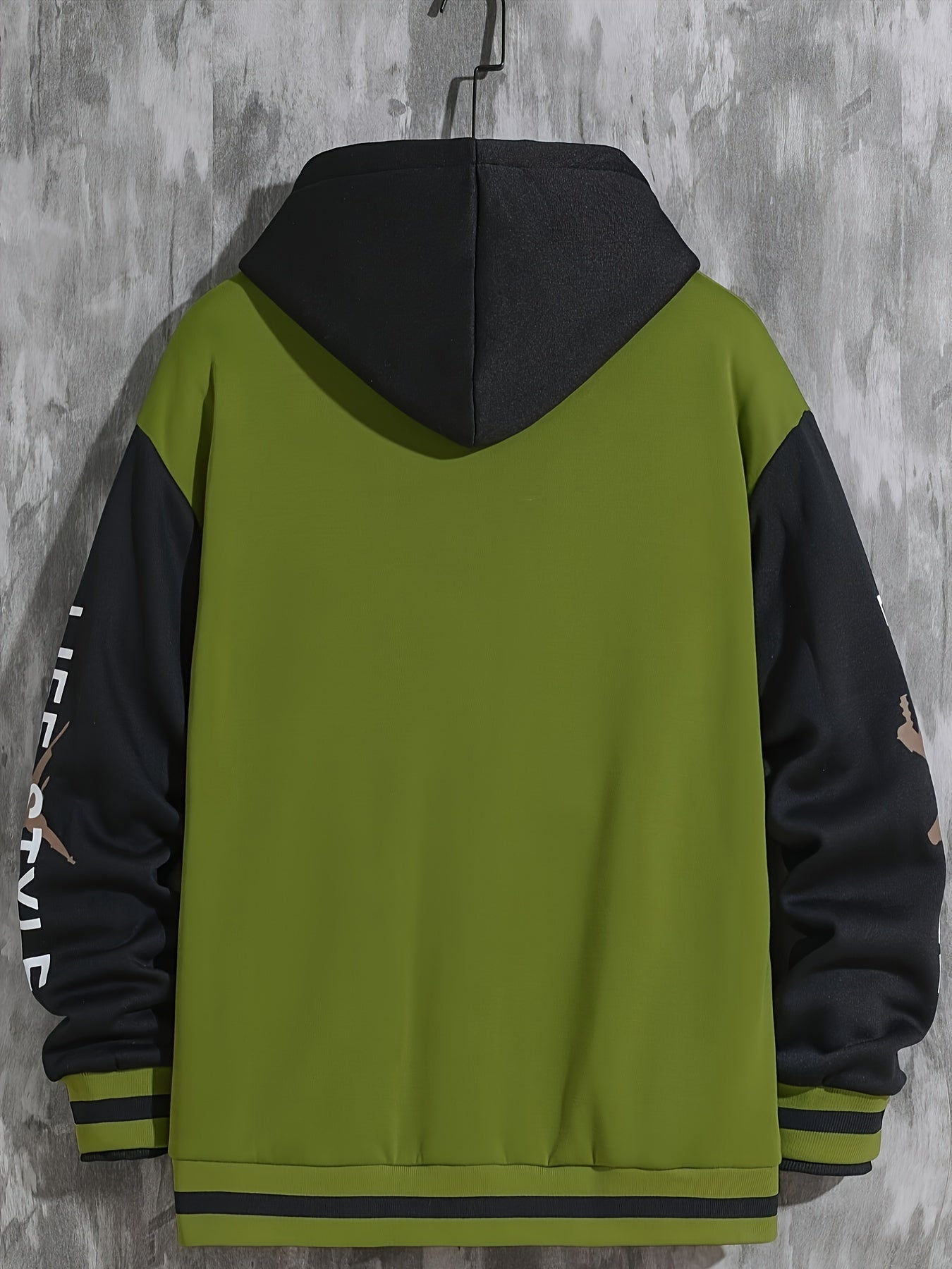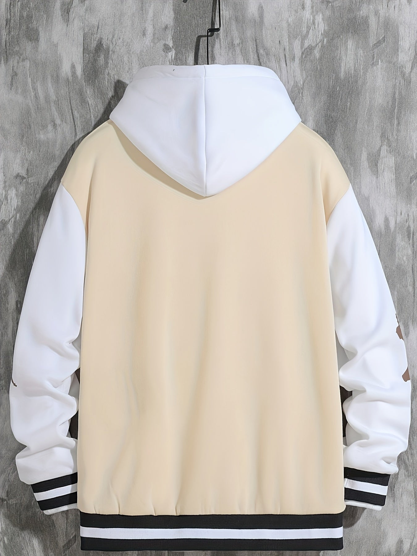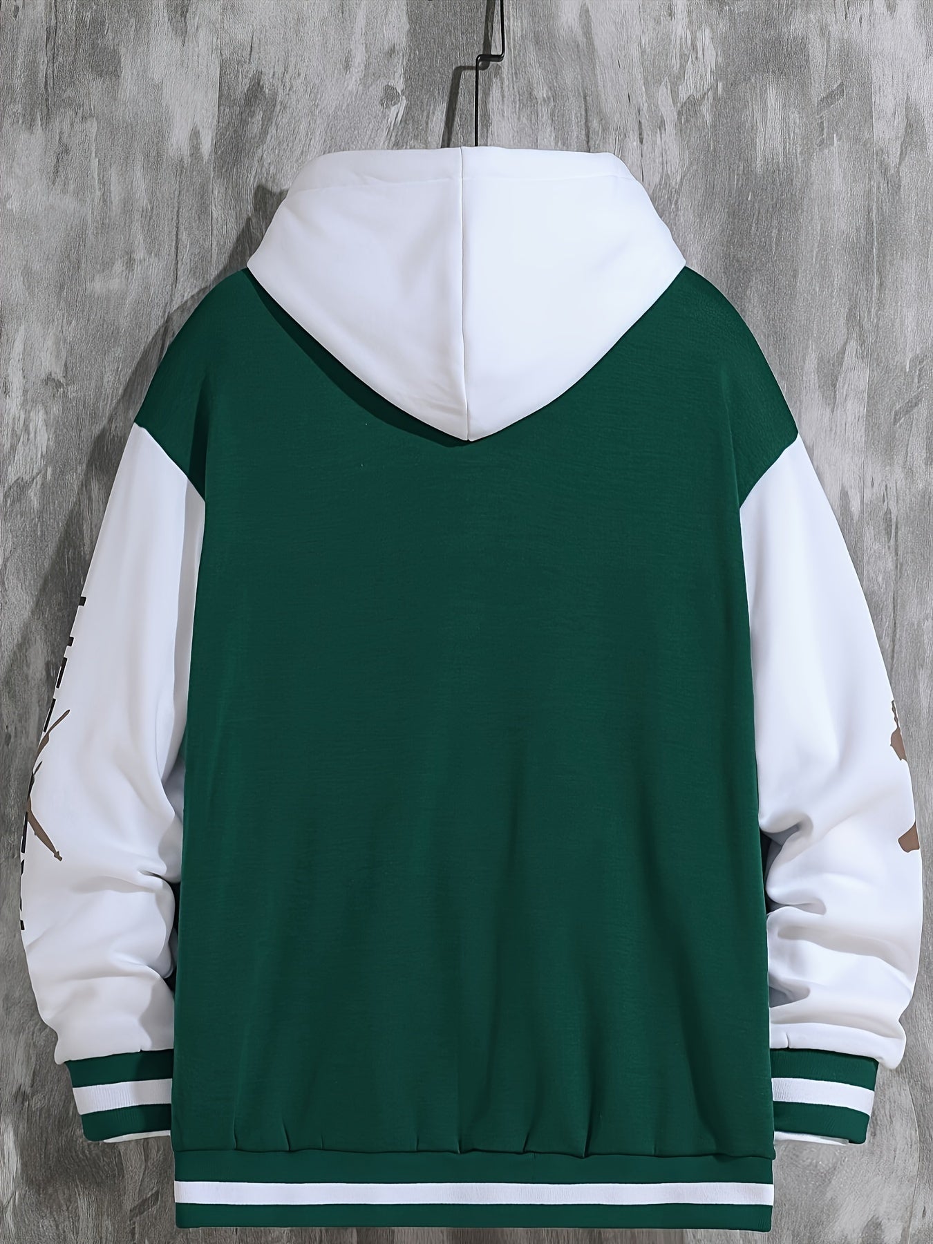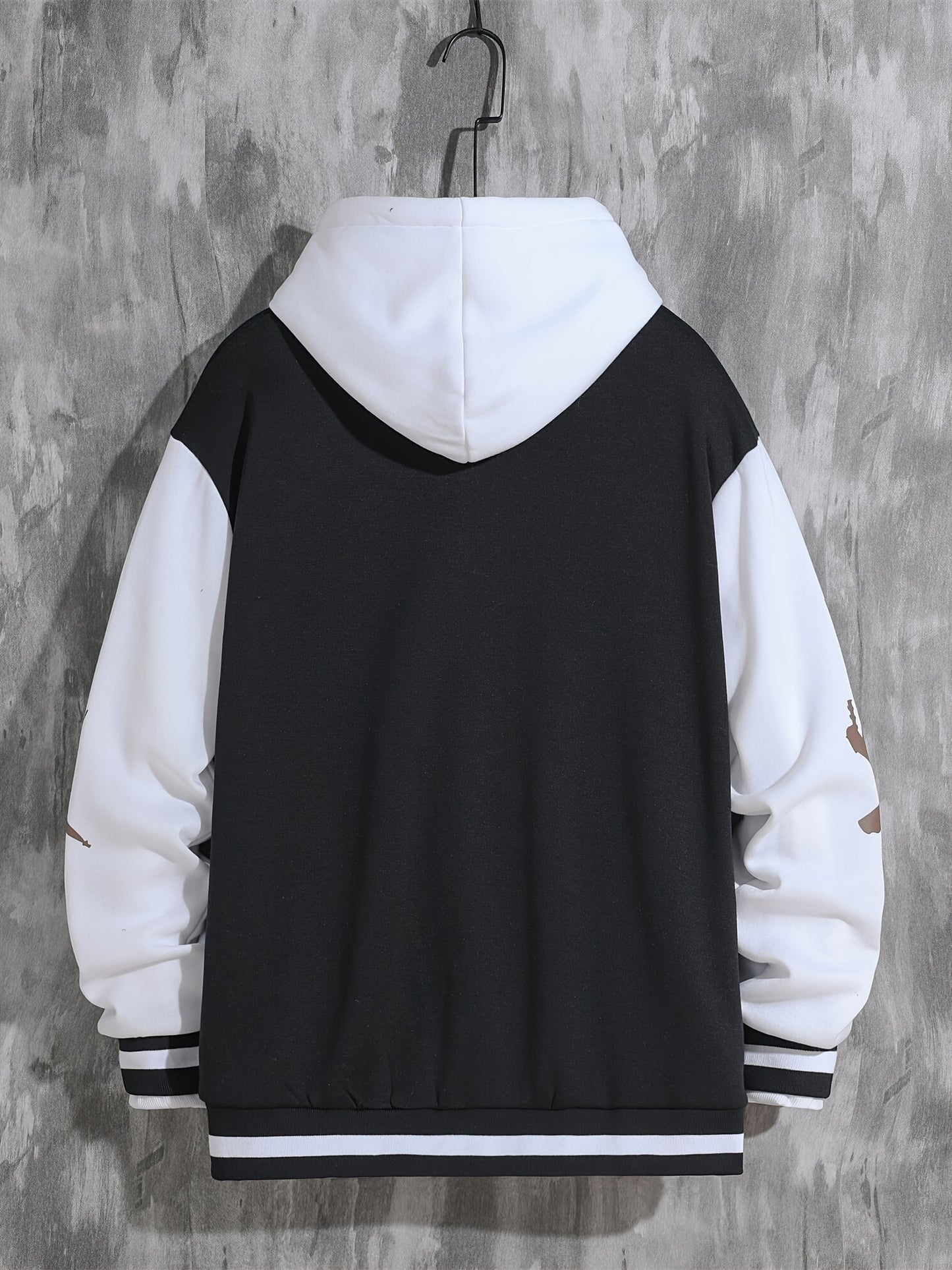 Men'S Casual Baseball Jacket, Polyester 100% Knit Fabric, Long Sleeve with Alphabet Pattern, Regular Length, Button Closure, Baseball Collar, Single Breasted Placket, Loose Fit, 200g/m² Weight - Spring/Fall Fashion