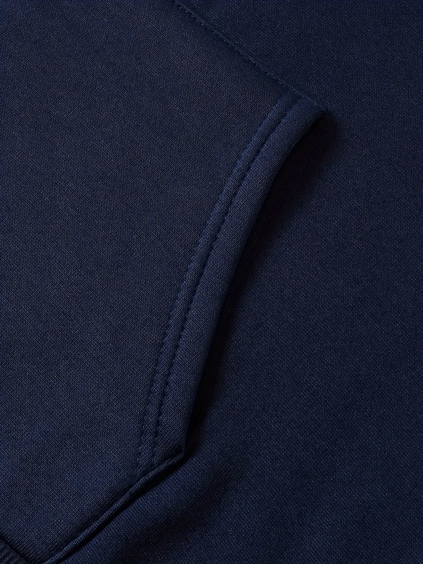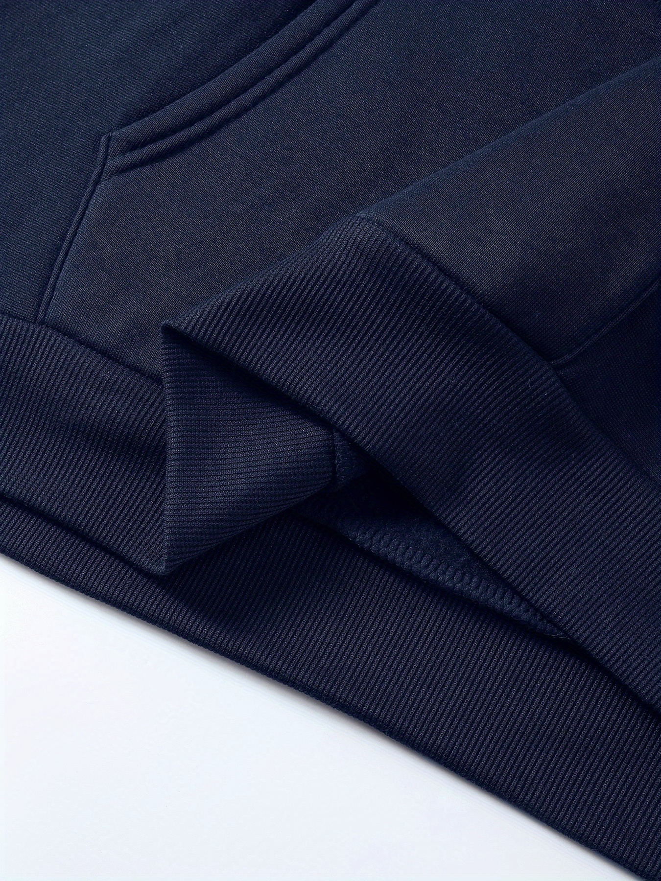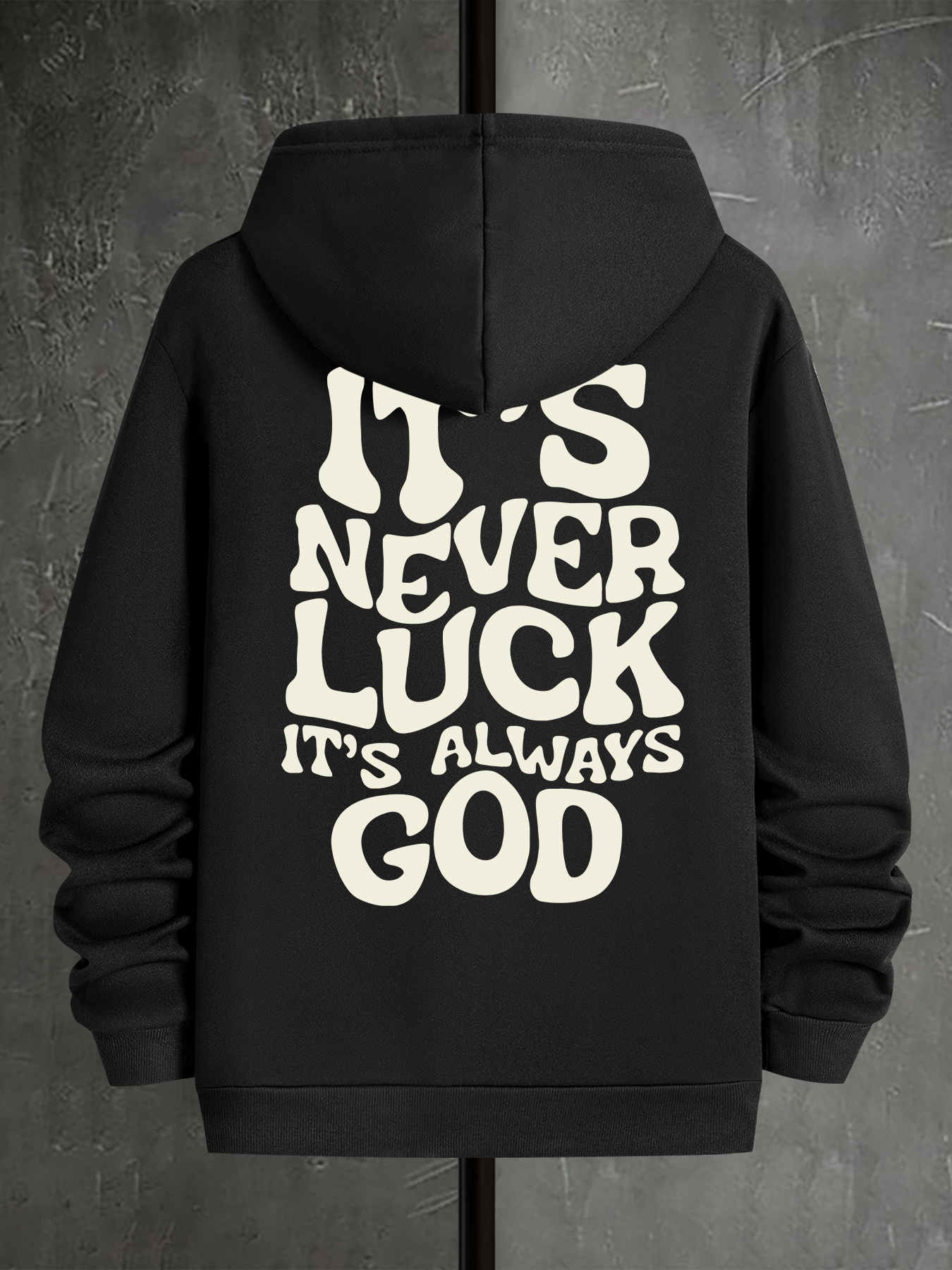 Men's Navy Blue Hooded Sweatshirt - "IT's NEVER LUCK IT's ALWAYS GOD" Print, Casual Polyester Knit, Long Sleeve with Kangaroo Pocket, Machine Washable for Spring & Autumn