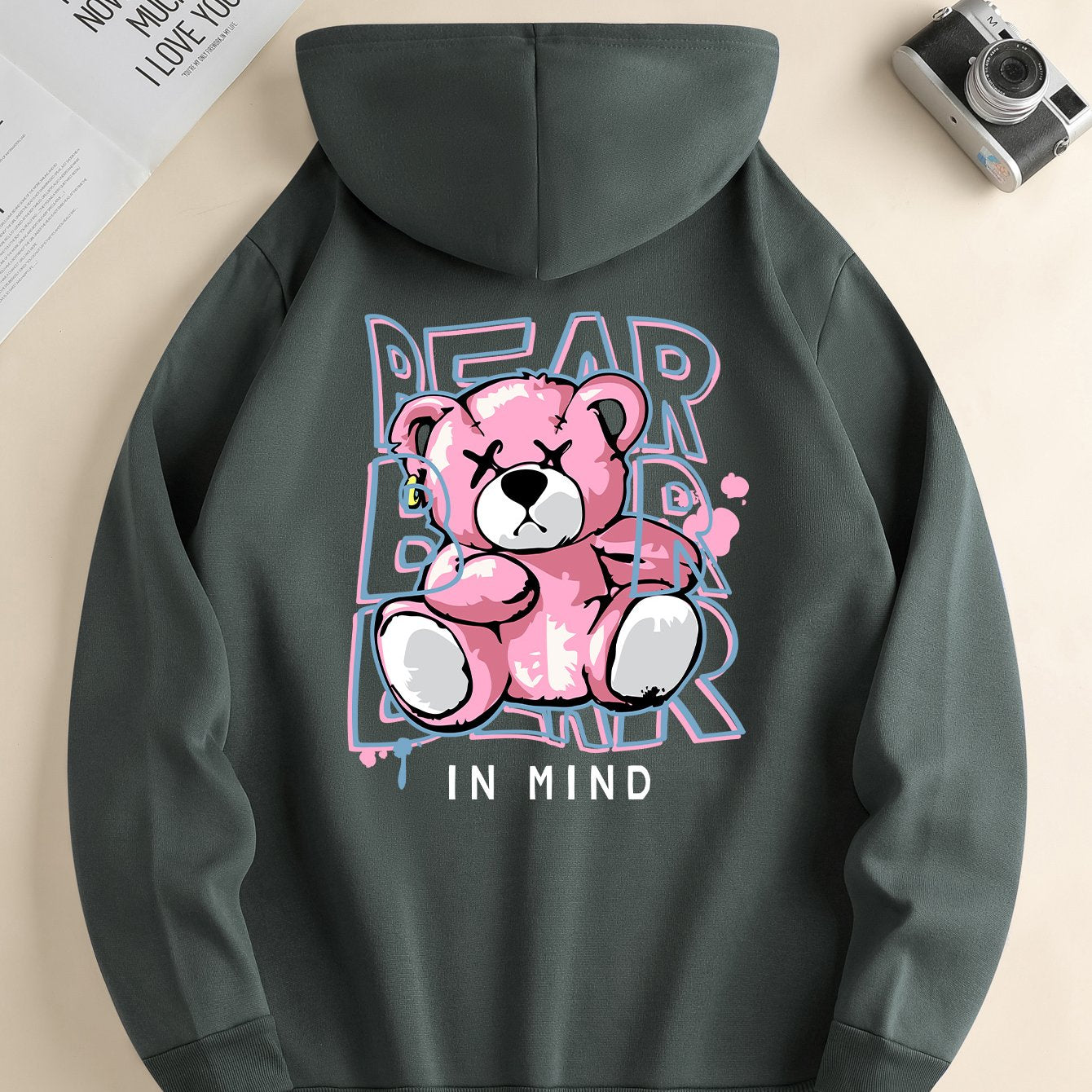 Men's Trendy Hoodie with Bear Print - Casual Drawstring Pullover with Kangaroo Pocket, Perfect for Fall & Winter