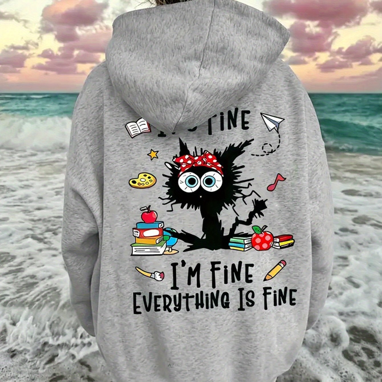 Women's Casual Hoodie with Geometric & Letter Print - Drawstring, Long Sleeve Pullover for Fall/Winter, Machine Washable