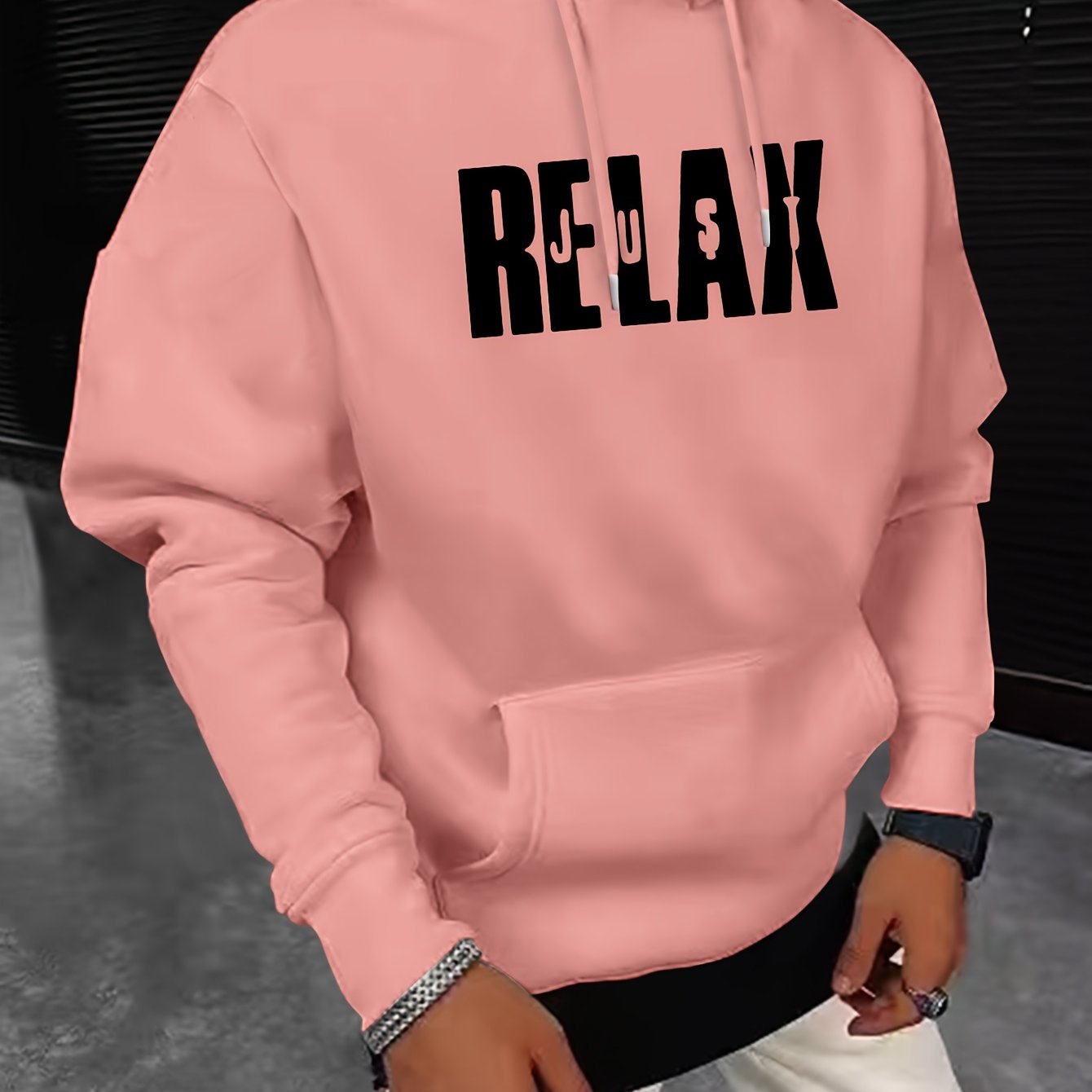 Men's Casual Fleece-Lined Hoodie with Geometric Print - Long Sleeve, Kangaroo Pocket Pullover for Fall/Winter